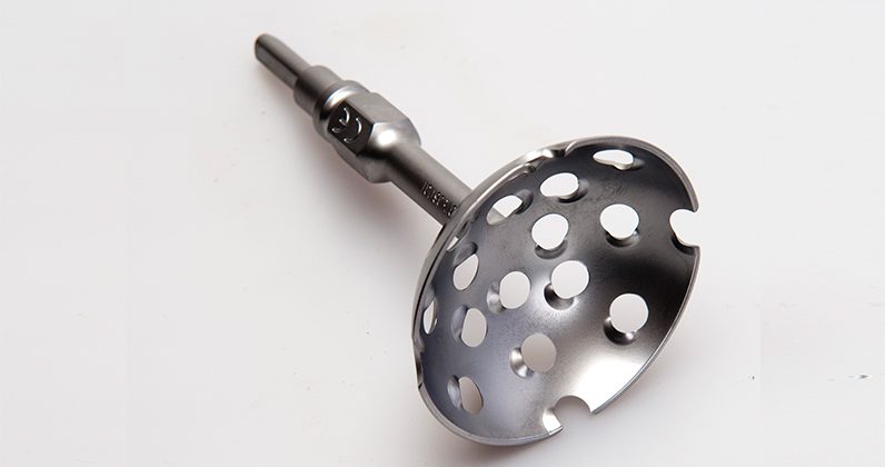 By using the inverted reamers, the cartilage and sclerotic bone can easily be removed from the femoral head. Removing cartilage and sclerotic bone with this device is much more efficient and saves time compared to manual removal. By attaching the inverted reamers to a power tool, it takes less than 30 seconds. The inverted reamers are equipped with an AO or Zimmer-Stryker-Hall coupling. With the wide range of reamers sizes, all sizes of femoral heads can easily be reamed.
